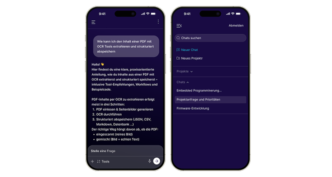 Die Enterprise Chatbot-Plattform basiert auf Compose Multiplatform, wodurch eine einheitliche Kotlin-Codebasis für Web, Android, iOS und Desktop genutzt wird. Durch durchgängiges Kotlin im Frontend und Backend werden Logik und Komponenten geteilt, was Redundanzen eliminiert. Die Architektur folgt Clean Architecture mit MVI-Pattern für klare Trennung der Verantwortlichkeiten. Ein modellagnostischer Ansatz ermöglicht die flexible Anbindung verschiedener LLMs, wodurch das System zukunftssicher und herstellerunabhängig bleibt. Diese technologische Basis schafft eine skalierbare, typsichere und plattformübergreifende Lösung als zentrale Kommunikationsplattform im Unternehmen.